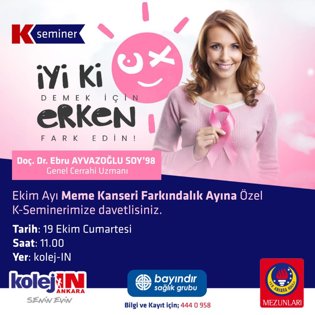 Bayındır Söğütözü Hastanesi ve Bayındır Kavaklıdere Hastanesi Genel Cerrahi Uzmanı Doç. Dr. Ebru Ayvazoğlu Soy’98’in meme sağlığı hakkında farkındalık yaratmak için önemli bilgileri paylaşacağı seminerimize davetlisiniz.